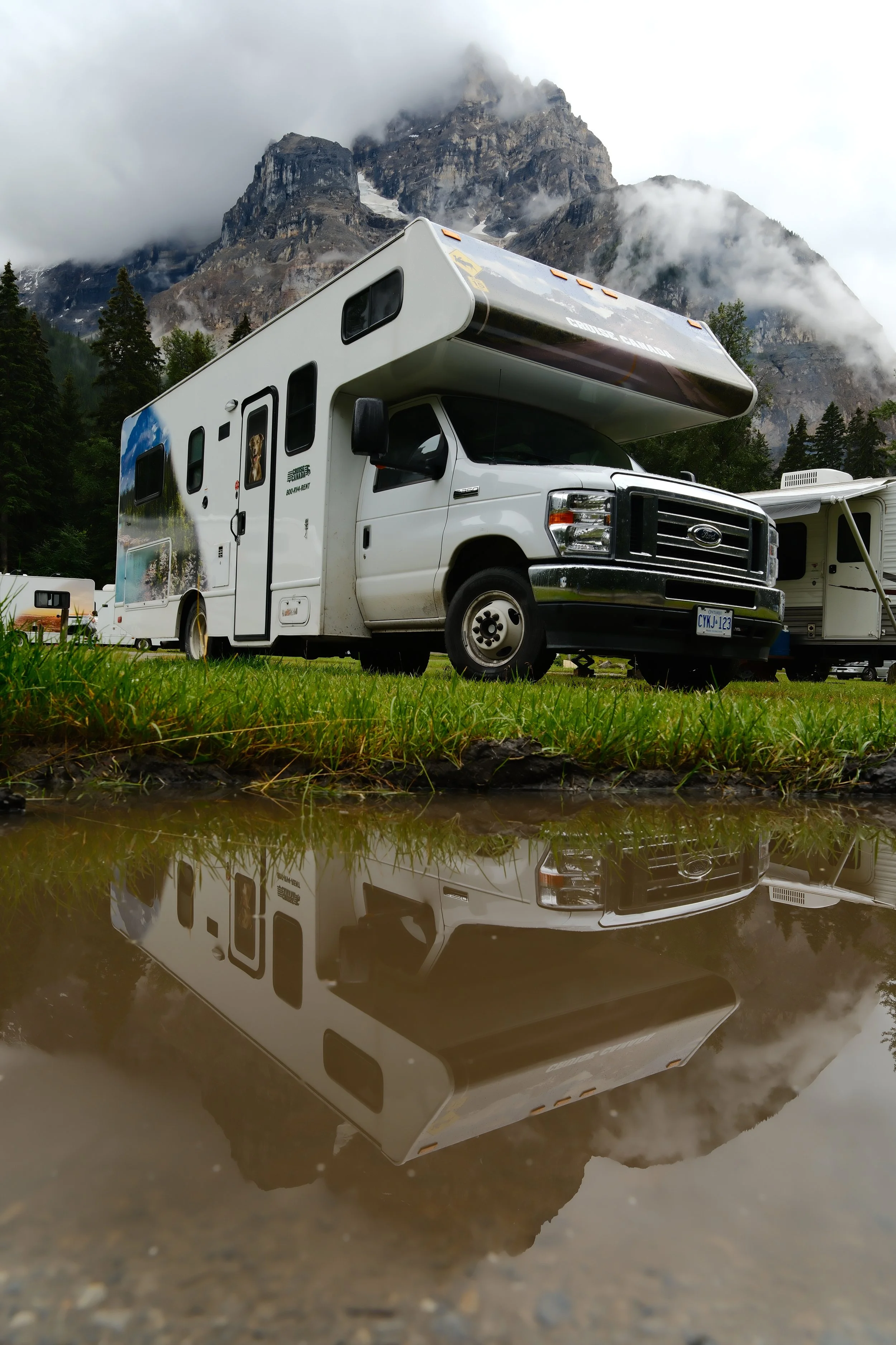 After the rain, wildlife emerged around the park, with our RV refecting in the puddles