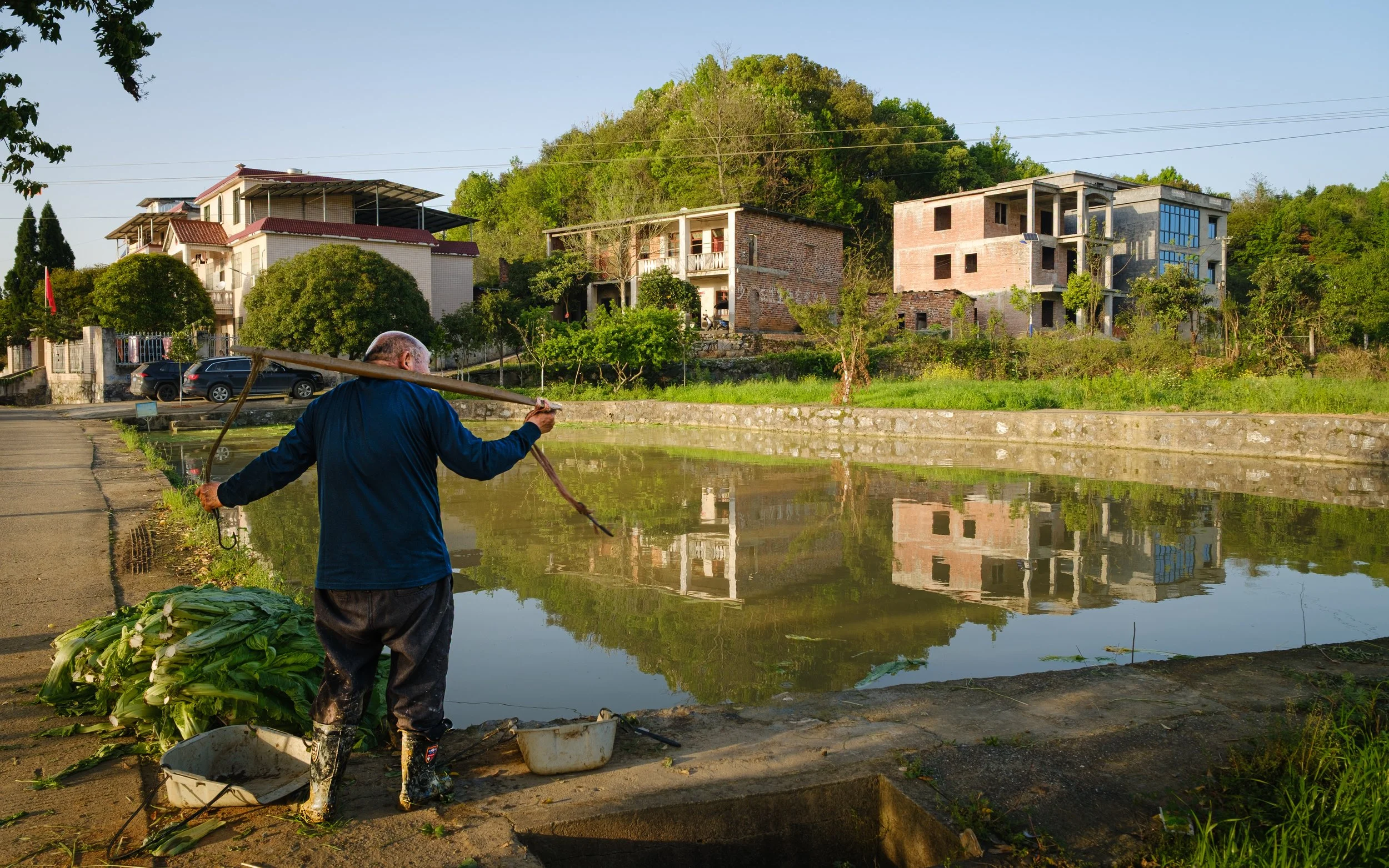 The village will empty out again. By Monday, most of those cars with city plates will be gone. The old woman will go back to her doorstep, alone with her tea. The fish ponds will be quiet.