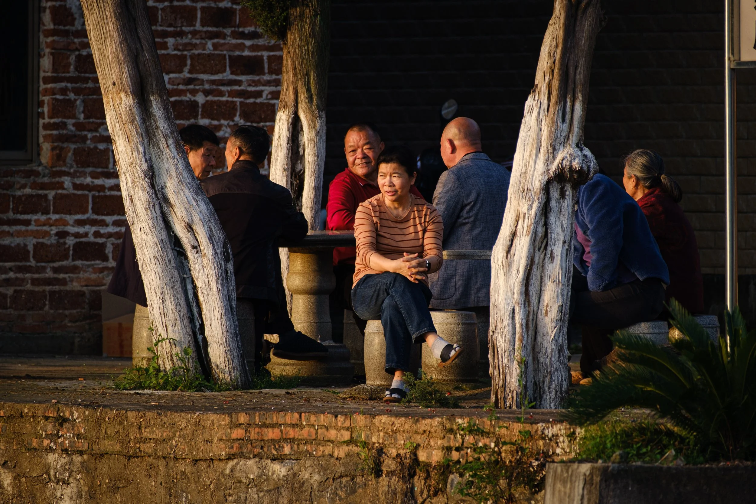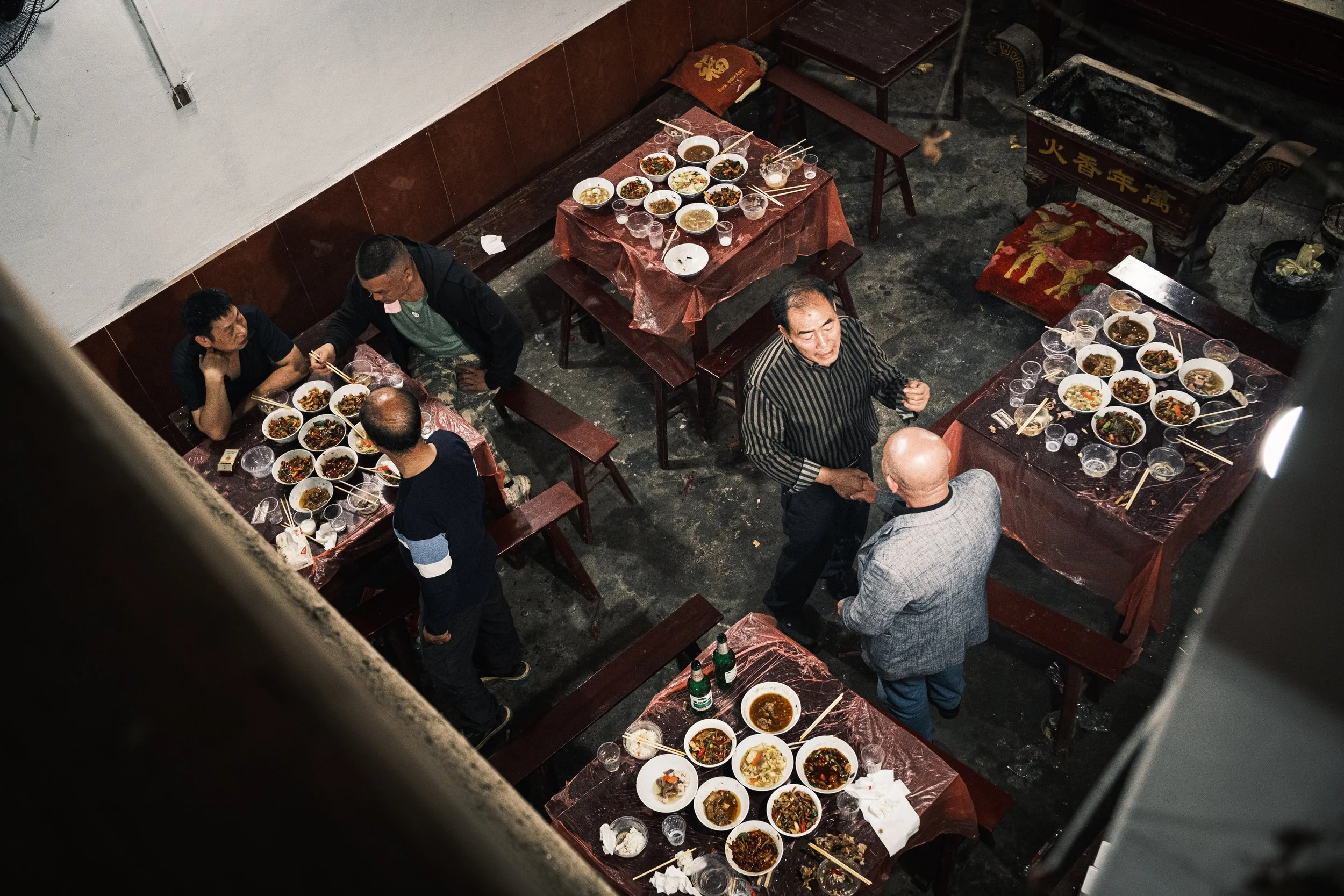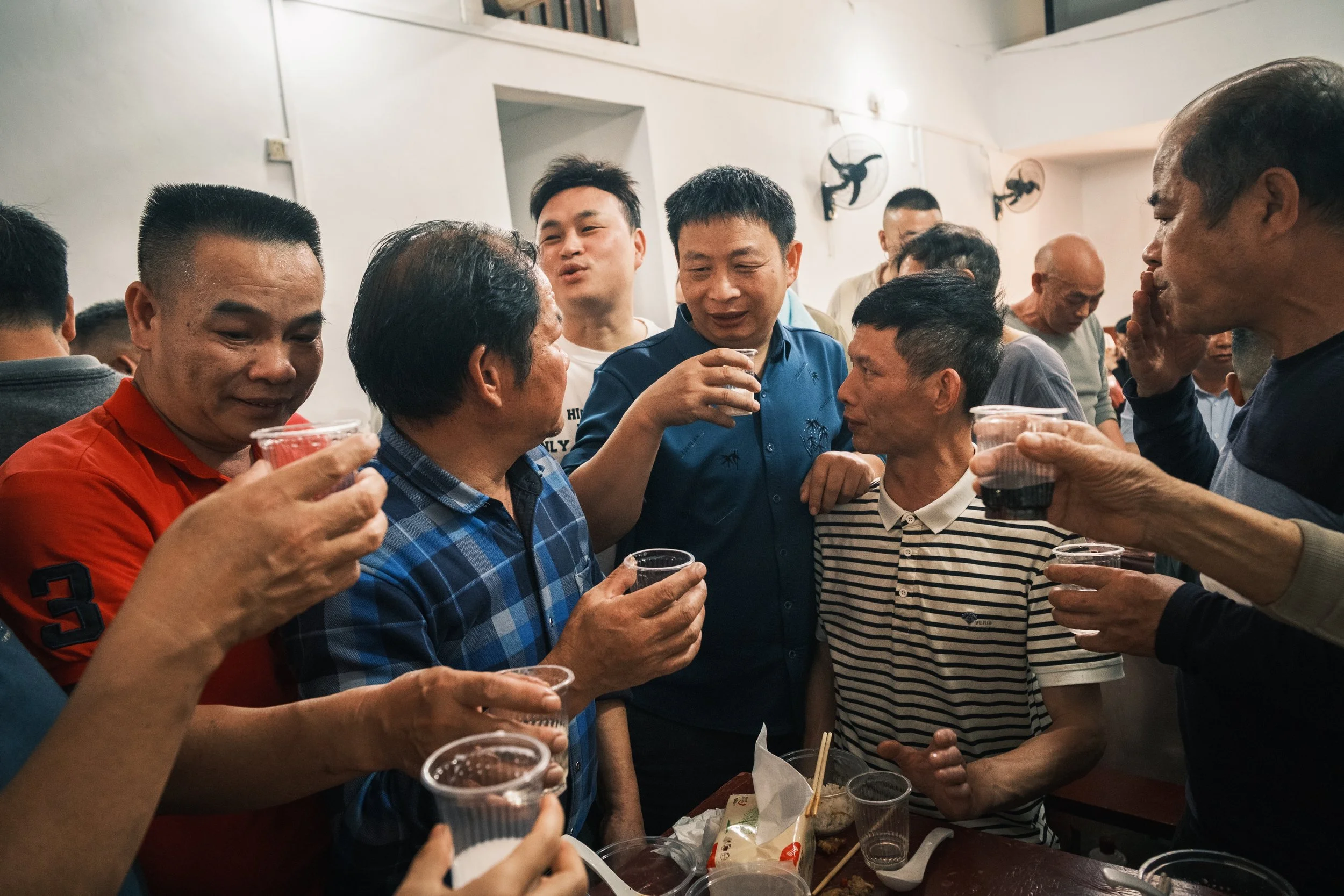 Here, friendliness wasn't an act, it was genuine. People pulled up chairs, squeezed in, made room. They poured baijiu for each other, the clear rice alcohol that burns all the way down. They smoked, they shouted across tables, they laughed at jokes I couldn't quite follow. Plates of fish, braised pork, stir-fried vegetables circulated.